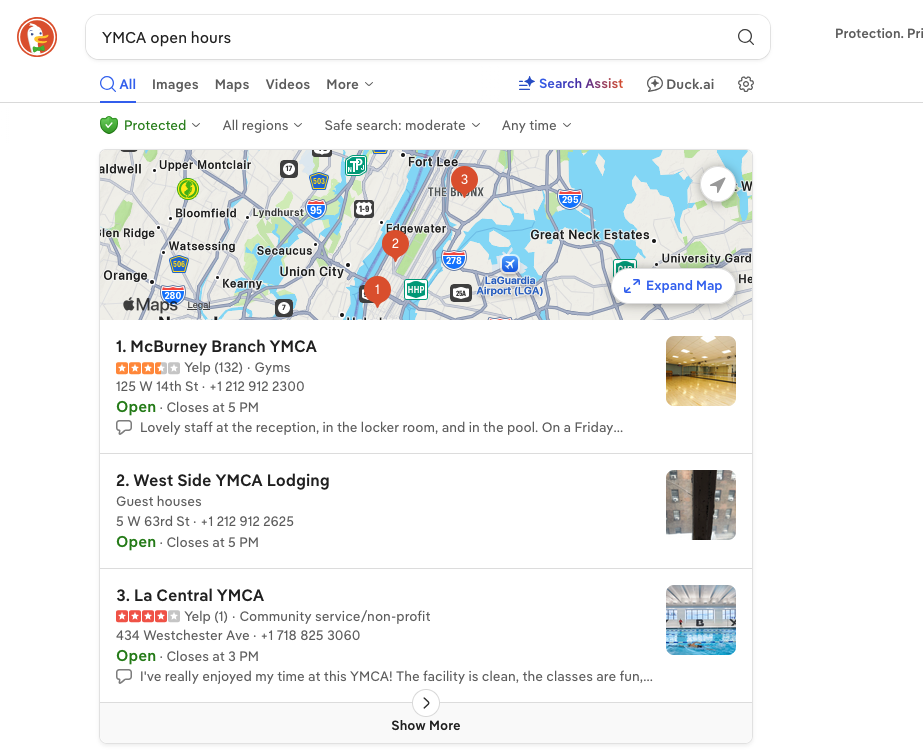 For example, when I want to check the open hours of my gym, I only need 10 seconds to get the answer on Google search, but I might need 1 minute to find the same information on DuckDuckGo.